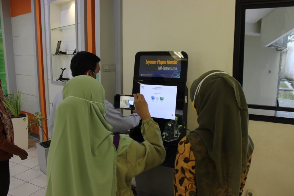 Perpustakaan FK-KMK UGM menghadirkan Anjungan Pinjam Mandiri, sebuah fasilitas inovatif yang memungkinkan pengguna melakukan transaksi sirkulasi secara mandiri, mencakup peminjaman, pengembalian, dan perpanjangan koleksi. Kehadiran anjungan ini menjadikan proses layanan lebih cepat, praktis, dan efisien, sehingga pengunjung dapat mengakses koleksi tanpa perlu mengantri di loket pelayanan. Fasilitas ini juga dirancang untuk meningkatkan kemandirian dan kenyamanan pengguna dalam memanfaatkan layanan perpustakaan, sekaligus terhubung langsung dengan sistem informasi manajemen perpustakaan yang memastikan seluruh transaksi tercatat secara otomatis, akurat, dan real time.